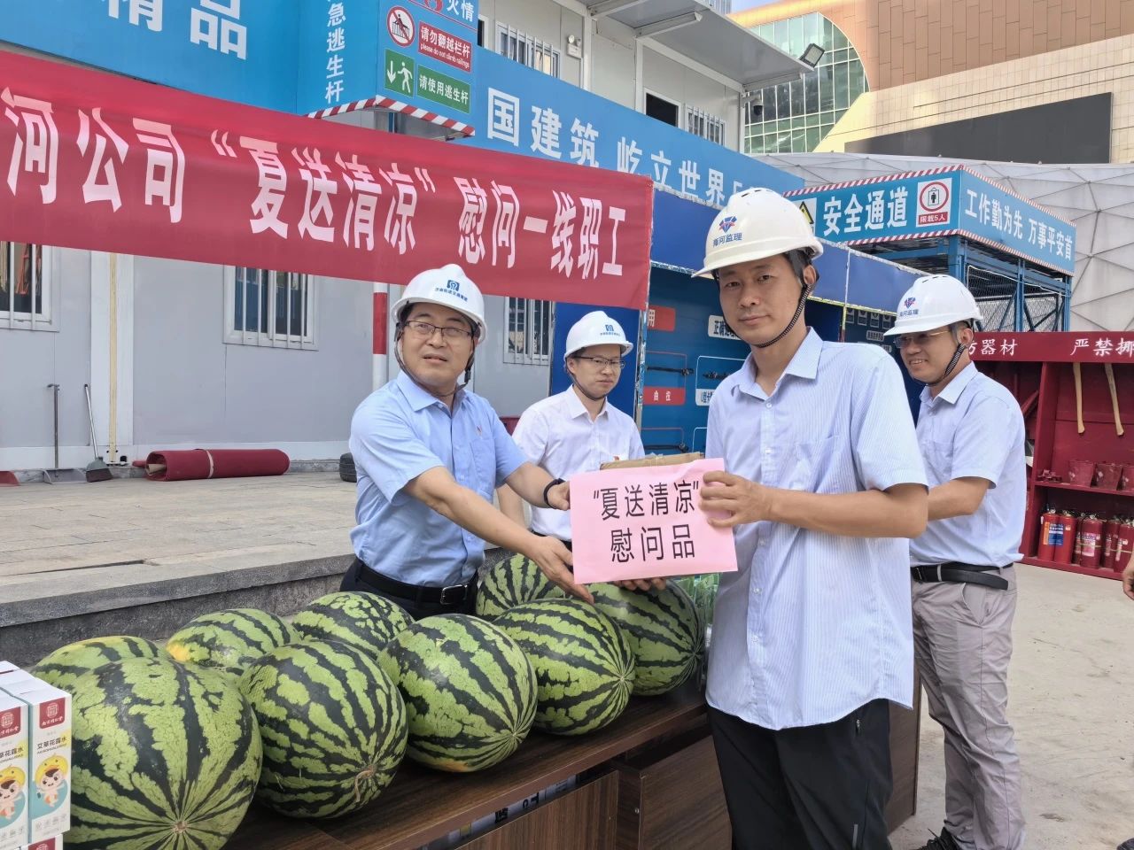 炎炎夏日,酷熱難當(dāng)。為切實做好夏季防暑降溫工作,給在炎熱環(huán)境下堅守崗位的職工送去公司的關(guān)懷,6月25日,工程咨詢公司在海河公司濟(jì)南軌道7號線項目組織開展“夏送清涼”慰問一線職工活動。工程咨詢公司黨支部書記、執(zhí)行董事、總經(jīng)理孫連勇,副總經(jīng)理郭建民,海河公司黨支部書記、經(jīng)理逄永強(qiáng)及有關(guān)部門負(fù)責(zé)同志參加活動。